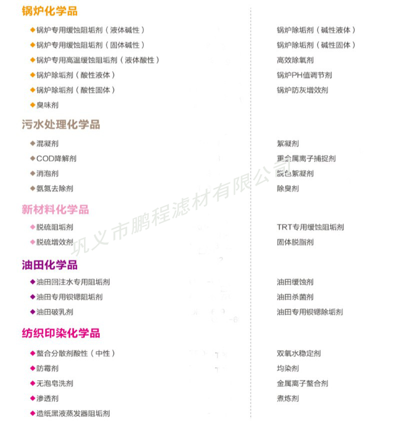 阻垢劑 清洗劑 還原劑 剝離劑 消泡劑——水處理劑廠家 鵬程濾材1月17號正式放假