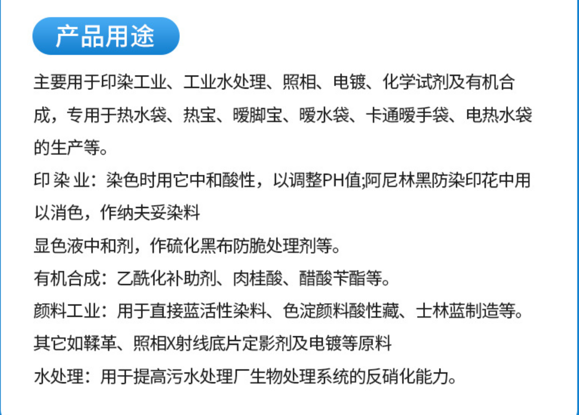乙酸鈉有機物使用技術指標