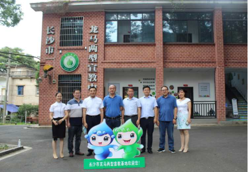 調(diào)研組實(shí)地調(diào)研長沙市龍馬兩型社區(qū)并合影留念