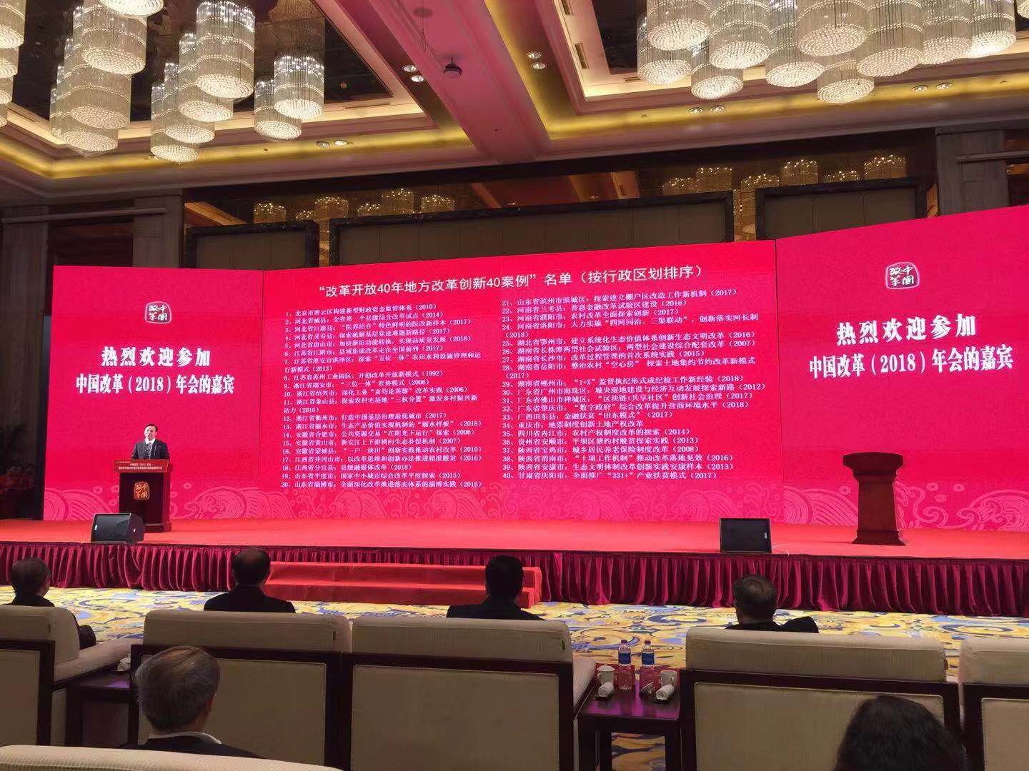 為響應(yīng)中央關(guān)于慶祝改革開放40年號召,貫徹習近平總書記在慶祝改革開放40周年大會重要講話精神,中國經(jīng)濟體制改革雜志社舉辦的“改革開放40年地方改革創(chuàng)新40案例”(簡稱“40年40案例”)征集活動于12月27日在江蘇省江陰市舉辦的“中國改革(2018)年會”上,揭曉最終名單。180多位來自全國20多個省區(qū)市的各級改革部門負責人參加了發(fā)布會議。“改革開放40年地方改革創(chuàng)新致敬案例”名單同時發(fā)布。