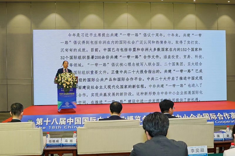 趙艾講到,今年是習近平主席提出共建“一帶一路”倡議十周年。十年來,共建“一帶一路”倡議得到包括非洲在內(nèi)的國際社會廣泛認同和熱情參與,取得了實打?qū)?、沉甸甸的成就。中共二十大開啟了推進中國式現(xiàn)代化,全面建設社會主義現(xiàn)代化國家的新征程。中非共建“一帶一路”也進入了深化務實合作,實現(xiàn)共贏發(fā)展的新階段。這種新形勢為中非中小企業(yè)拓展國際化互利合作空間,在推進“一帶一路”建設中進一步發(fā)揮重要作用提供了新機遇。