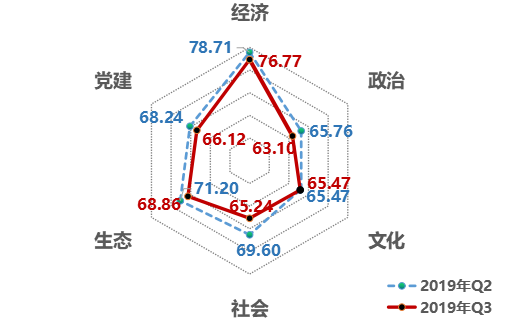 1、從領(lǐng)域來看,文化領(lǐng)域改革熱度值保持穩(wěn)定,并首次超過社會領(lǐng)域。第三季度,經(jīng)濟領(lǐng)域得分76.77,生態(tài)領(lǐng)域得分68.86,黨建領(lǐng)域得分66.12,文化領(lǐng)域得分65.47,社會領(lǐng)域得分65.24,政治領(lǐng)域得分63.10。